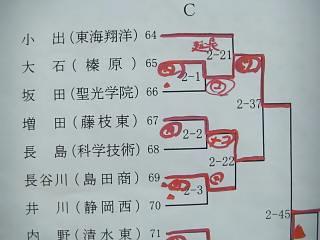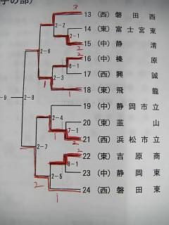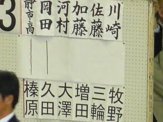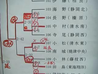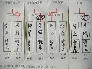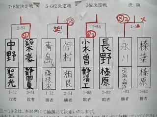 1位 永川 東海 2位 榛葉 榛原 3位小木曽 静清 4位 長野 榛原 5位 伊村 相良 6位 青島 藤枝東 7位 鈴木 静東 8位 中野 聖光学院 以下抽選 9位 大塚 明誠 10位 前田 明誠 11位 竹田 東海 12位 箕輪 東海 13位 望月 静東 14位 大石 榛原 15位 阿部 科学技術 16位 藤浪 静市立 |